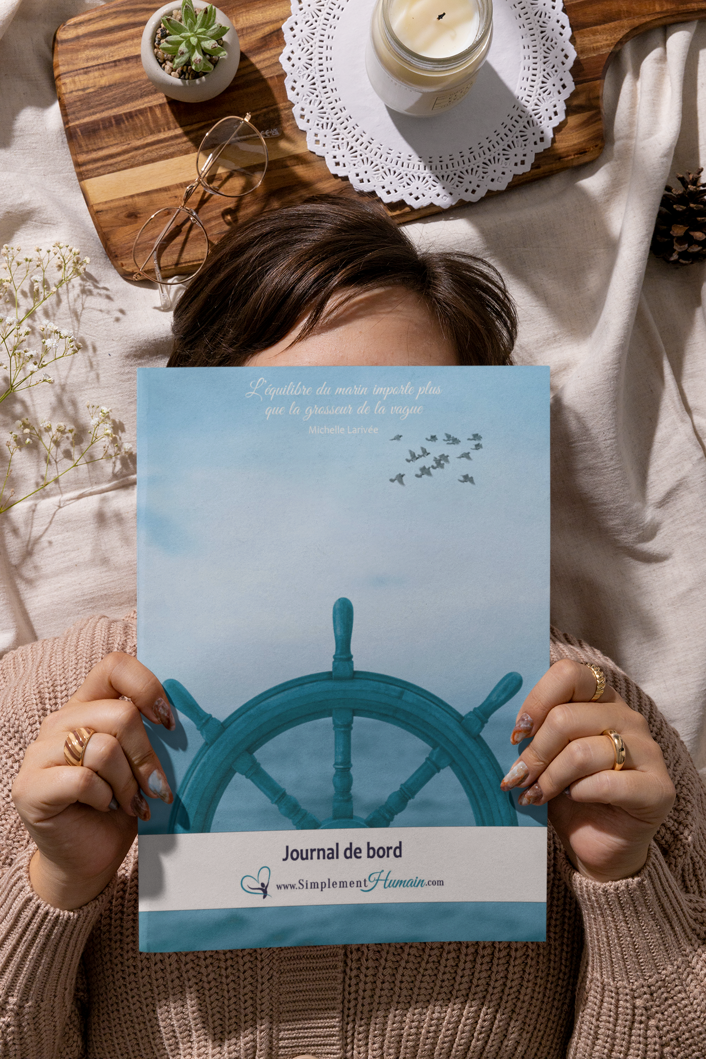 - Le Journal de bord Simplement Humain – un cahier d'écriture, un espace doux pour écrire, t’observer et cultiver une relation bienveillante avec toi-même.