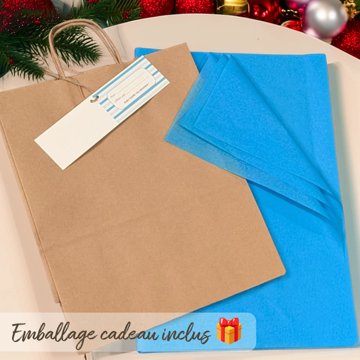 - Emballage cadeau compris – un sac kraft Simplement Humain avec papier de soie turquoise et étiquette — prêt à déposer directement sous le sapin. 🎄
