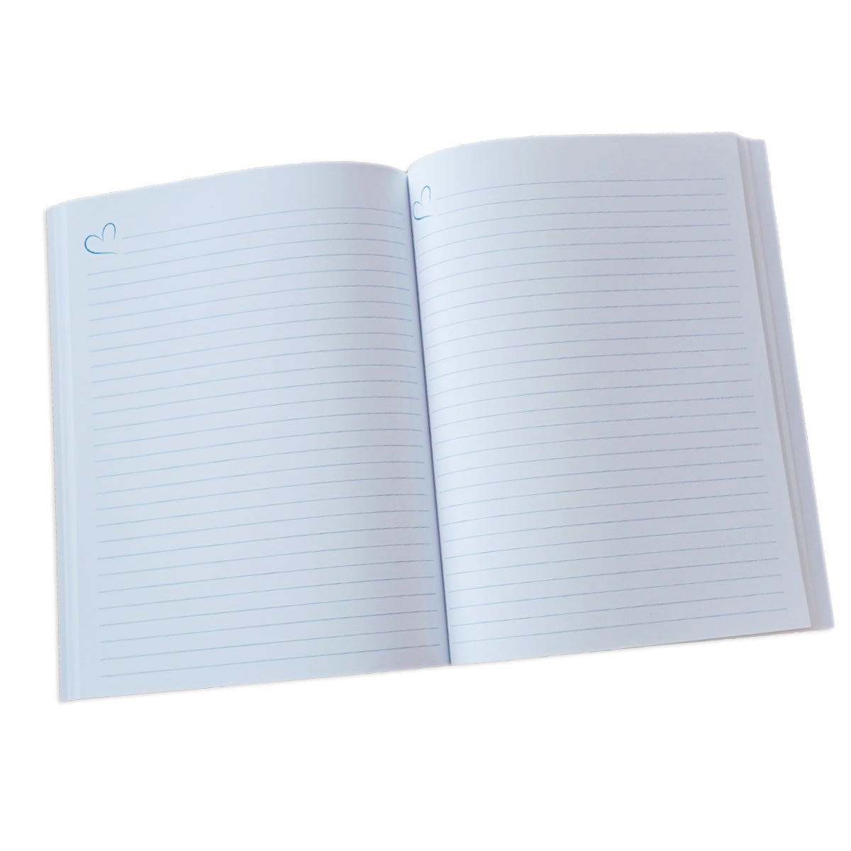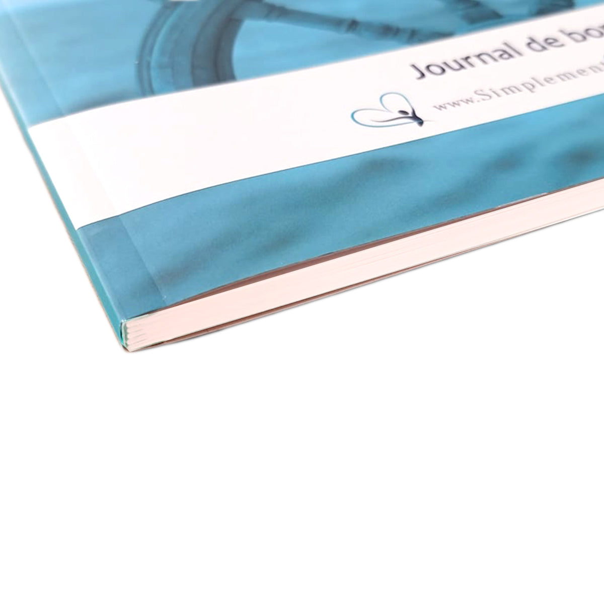 - Intérieur : Papier opaque 140M lisse blanc, lignes de couleur turquoise